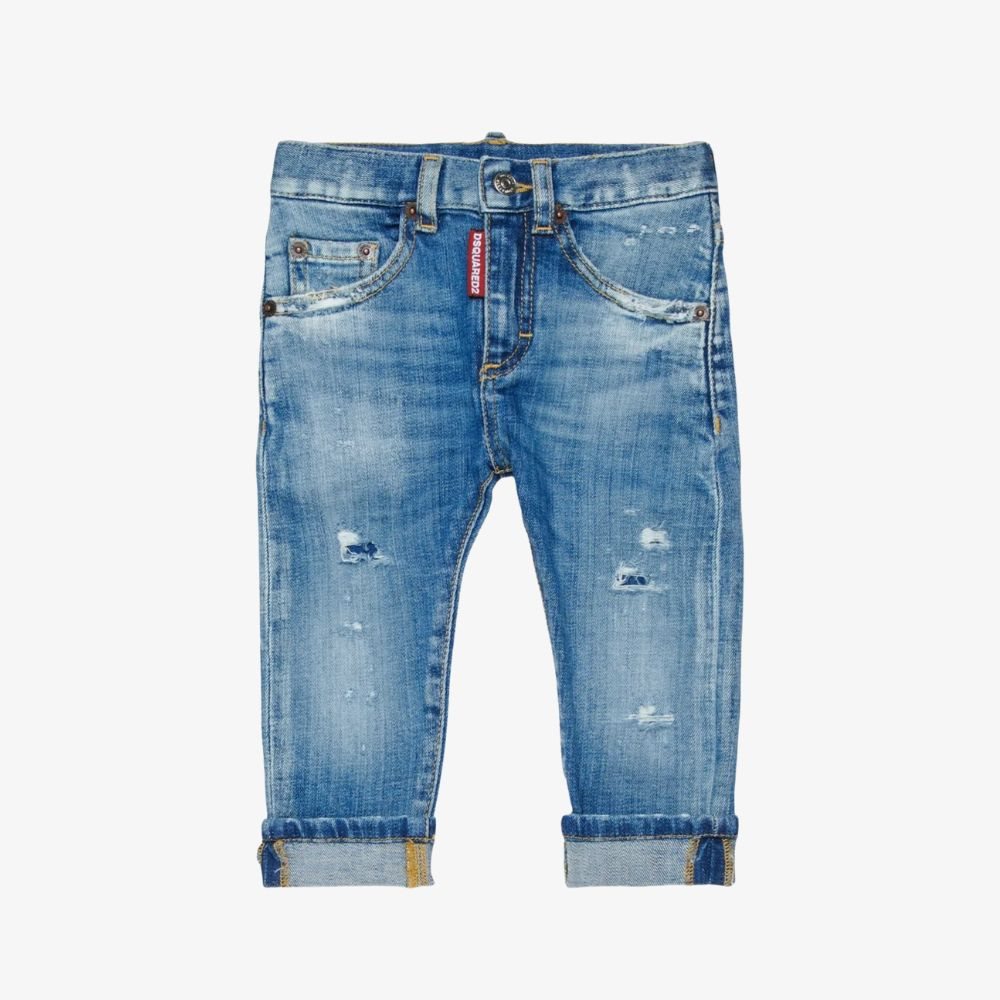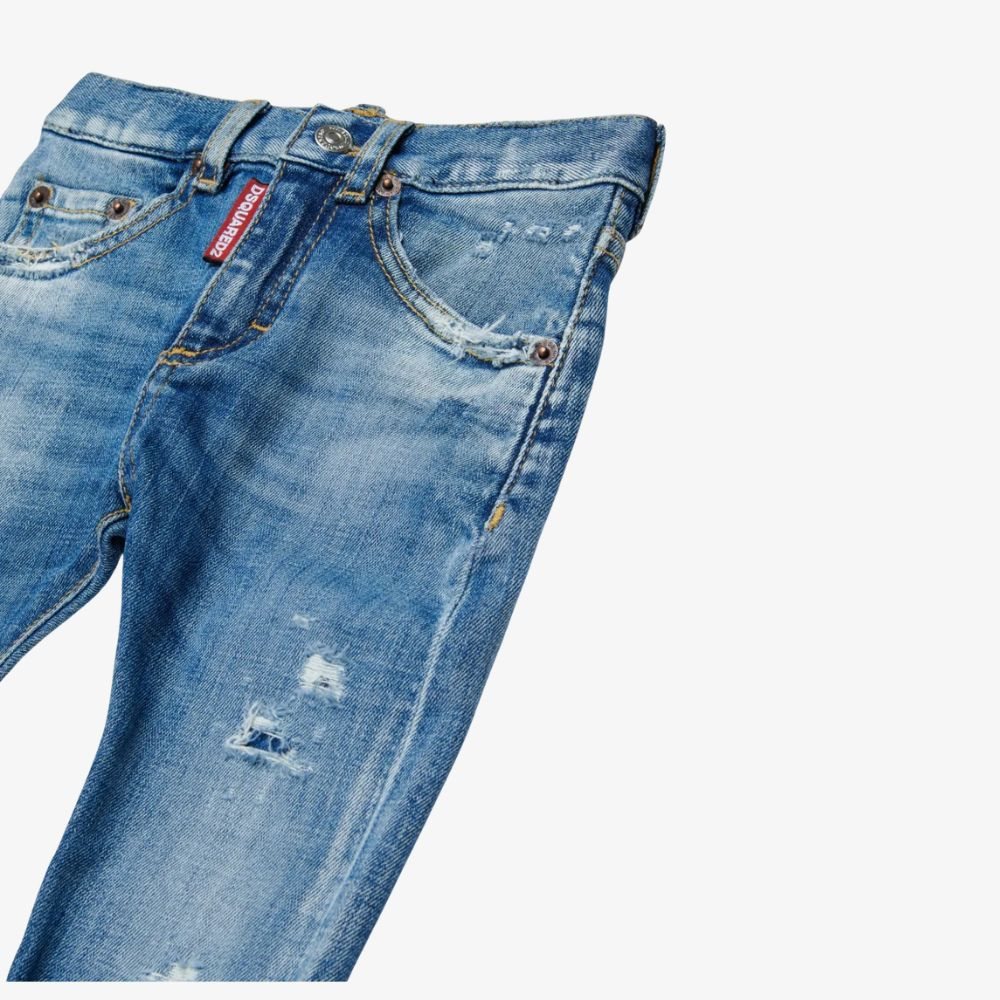 -Gewassen destroyed blauwe jeans