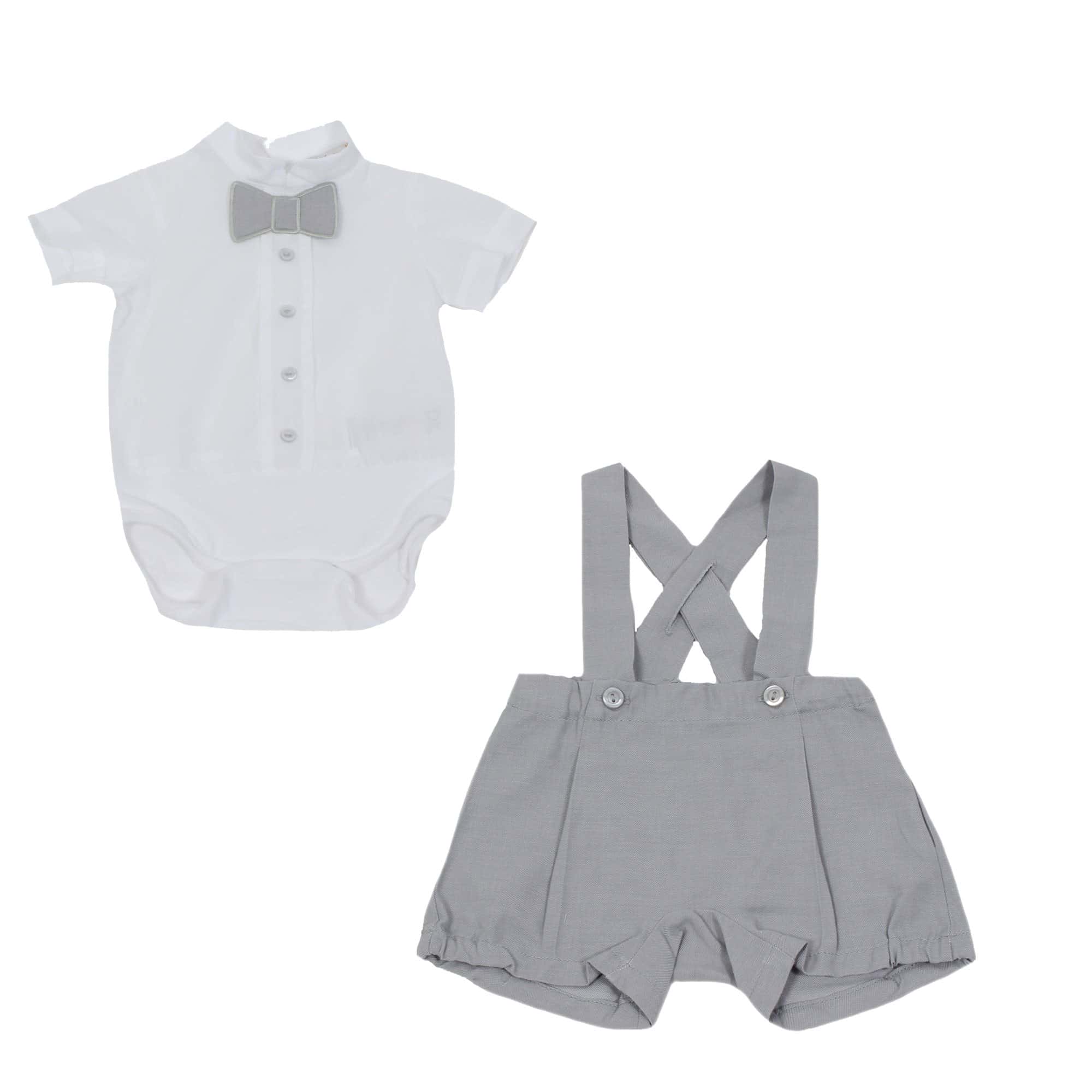 -Romper met grijze papillon strik geappliceerd