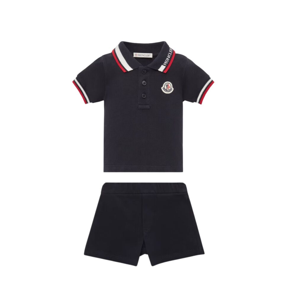 Marine polo korte mouw met bies en logo kraag