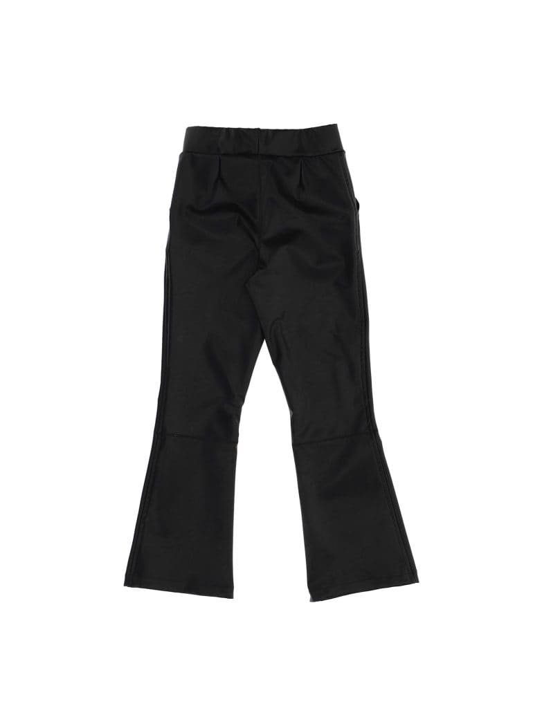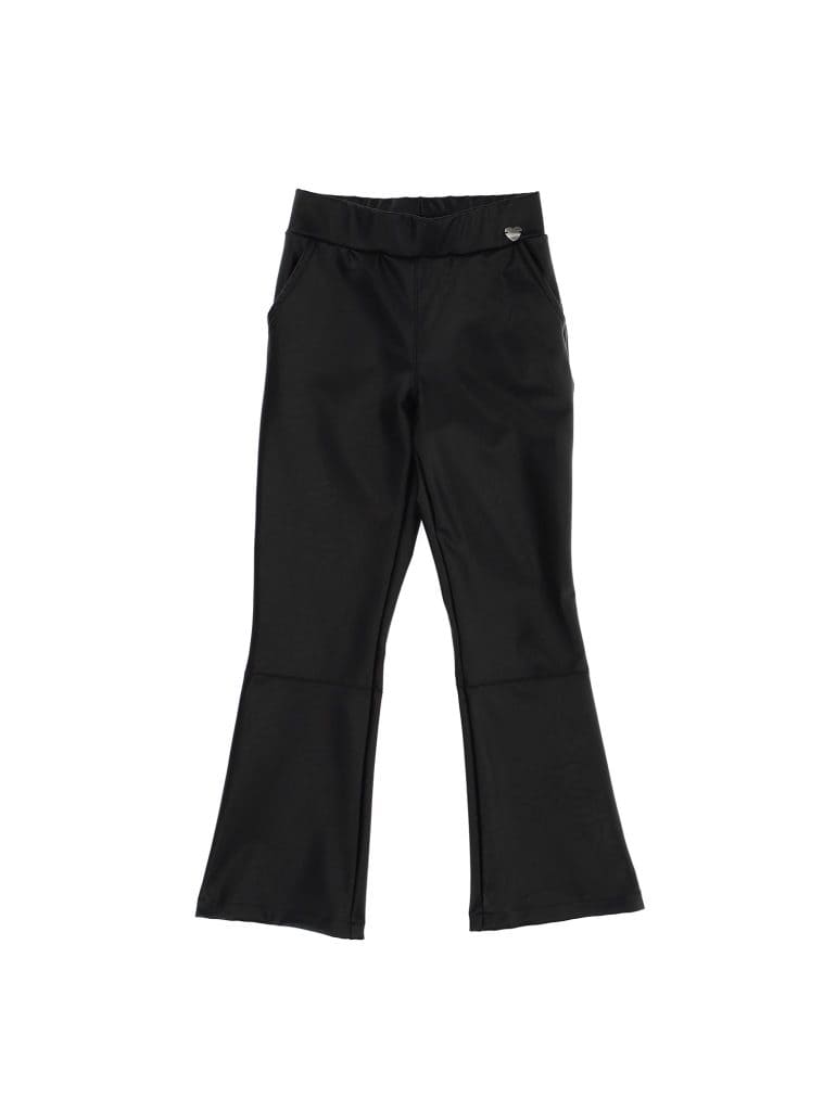 -Kunstlederen broek met uitlopende pijpen en streekzakken