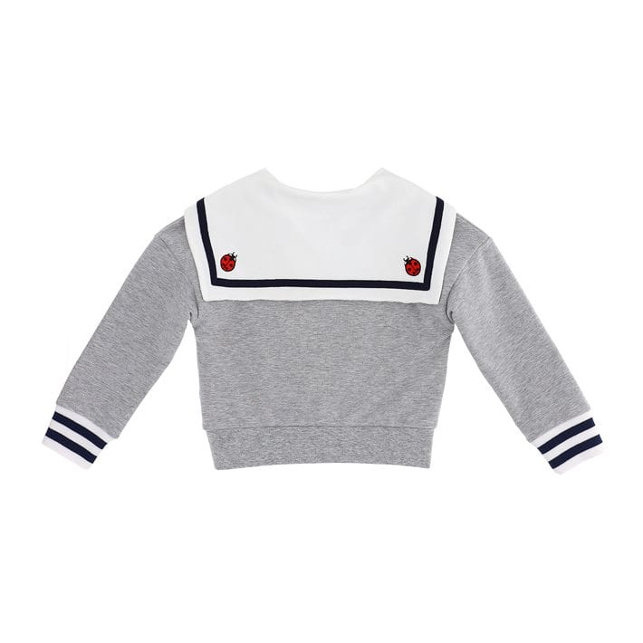 -Matrozenkraag met bloem applicatie voor en lieveheersbeestjes achter.
