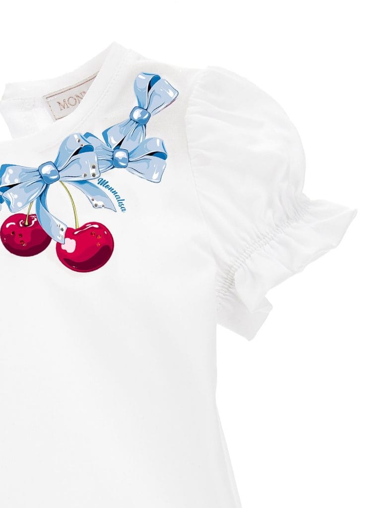-Print necklace of bows and cherries withr rhinestones