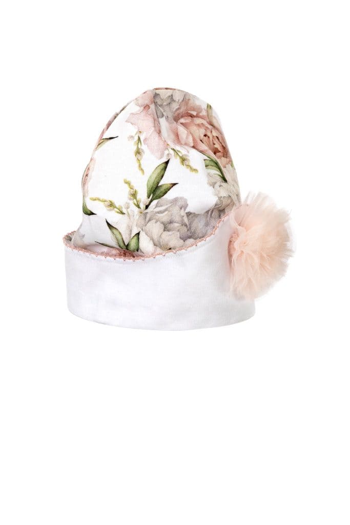 – Tricot muts met bloemprint