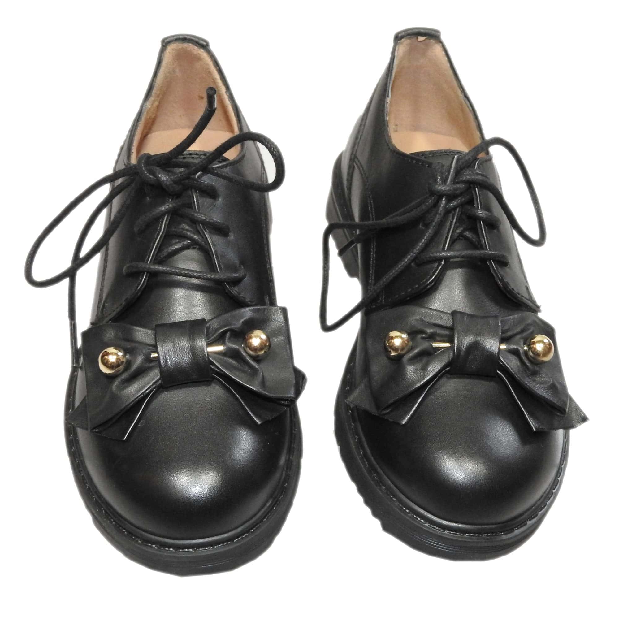 -Veterschoen met een strik op de neus met gouden staafje