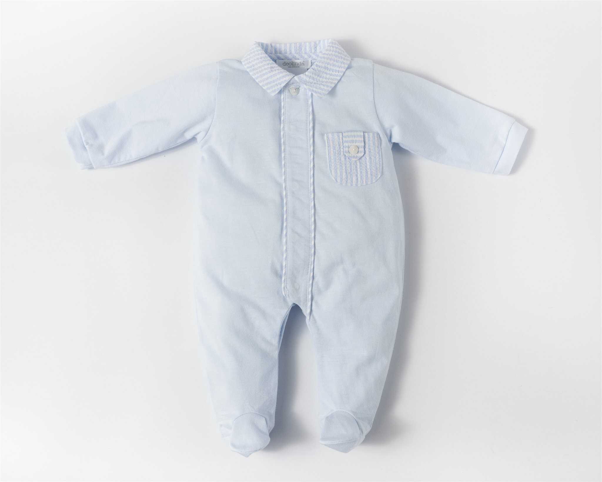 -Kraag + borstzakje blauw wit gestreept