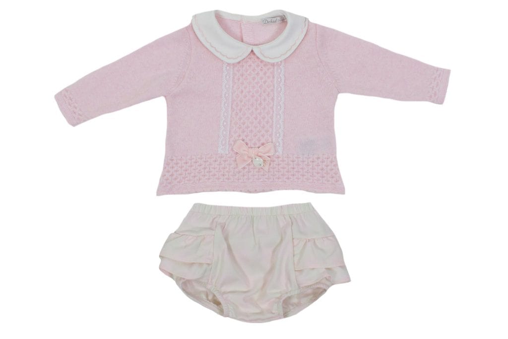 –Dessin gebreid, kanten ranje en fluwelen strikje