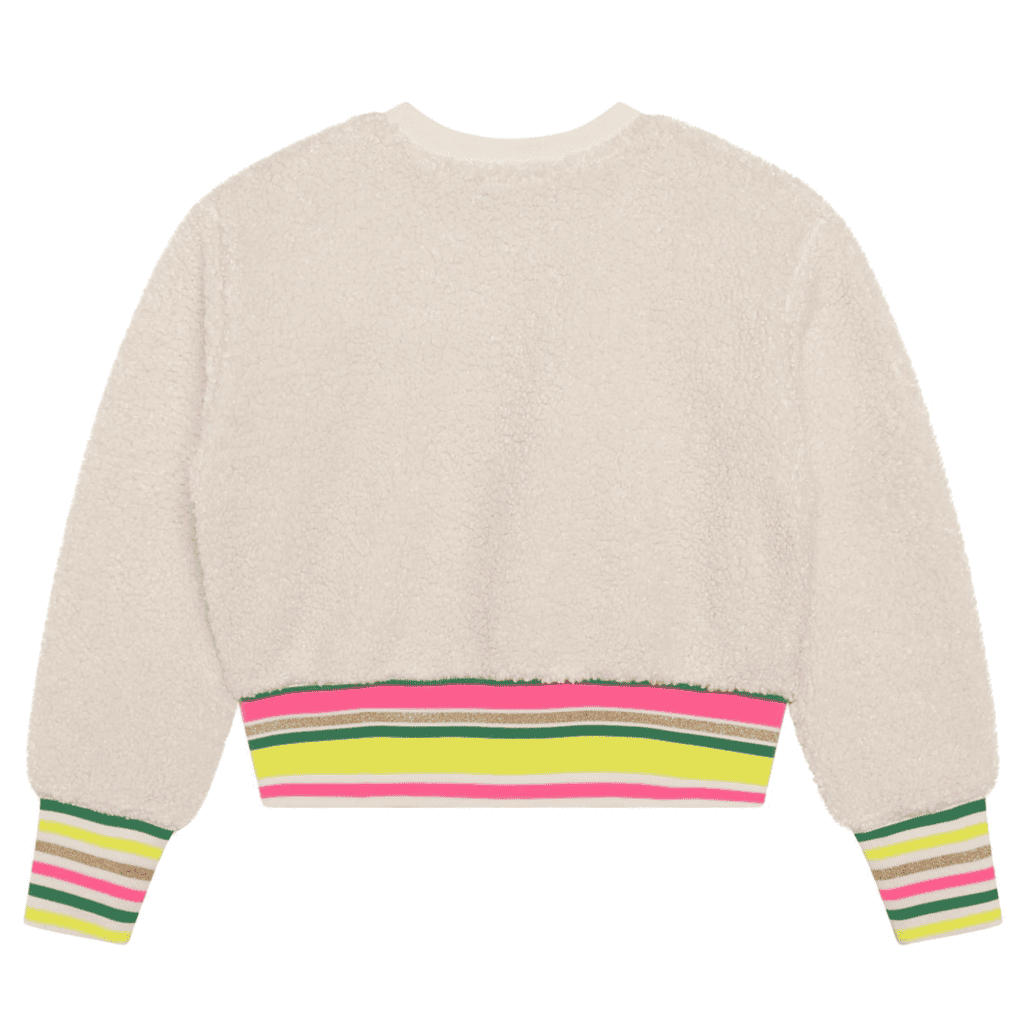 – Gekleurde streep band taille en manchetten