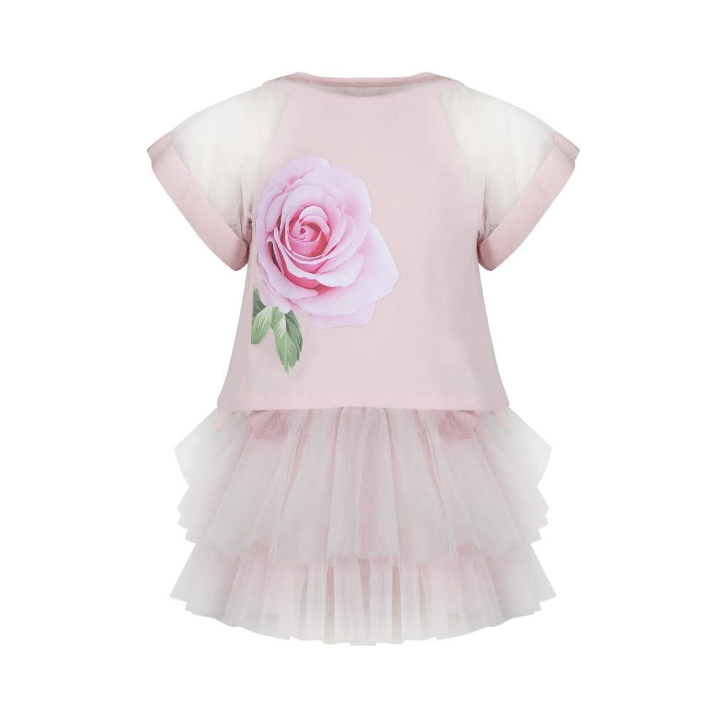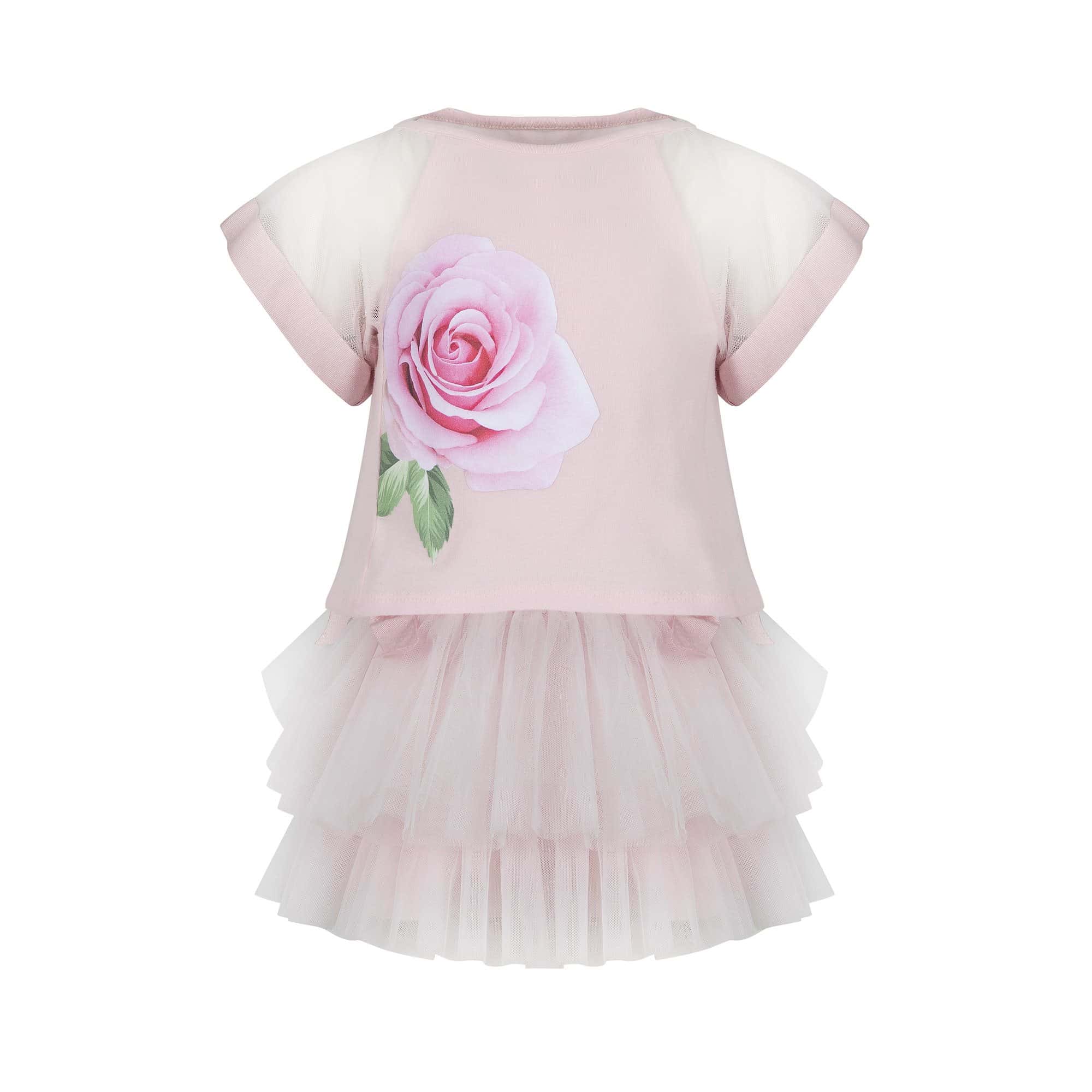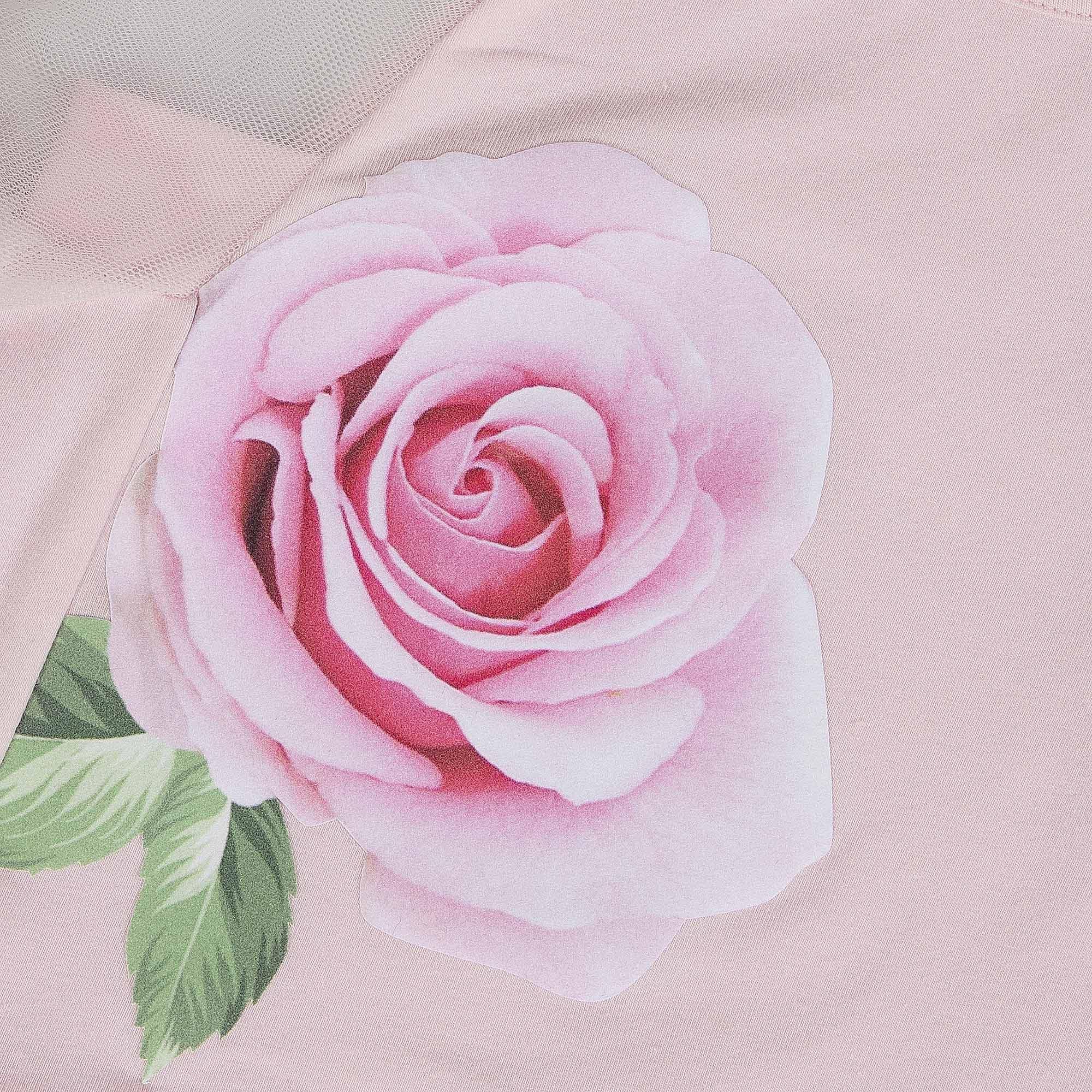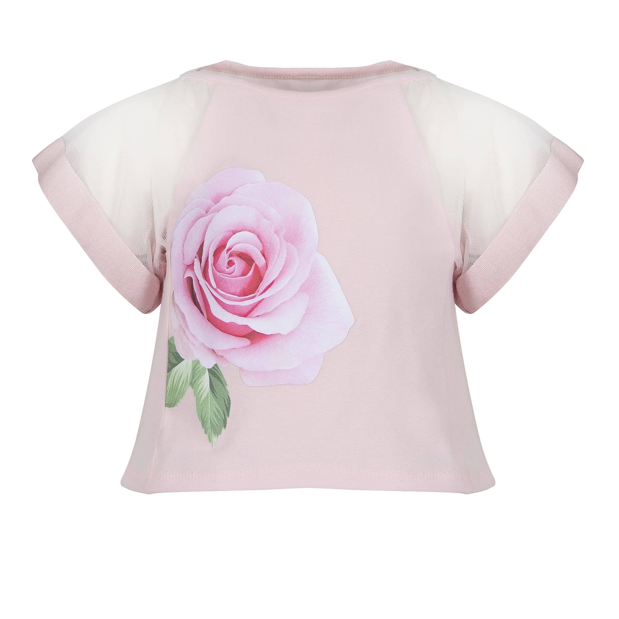 -Shirt print roos met voile mouwen