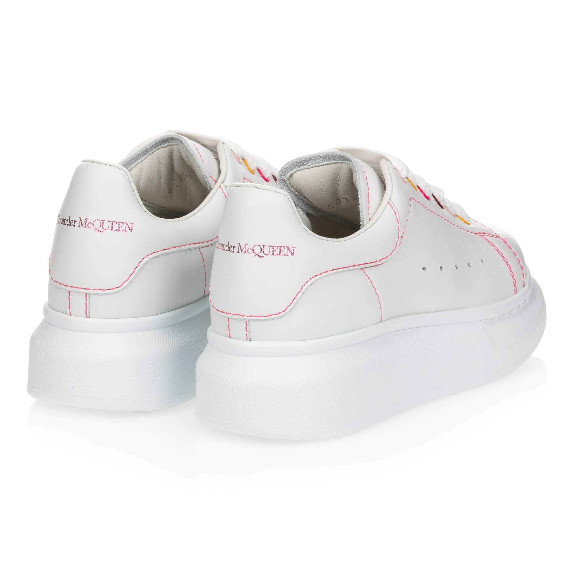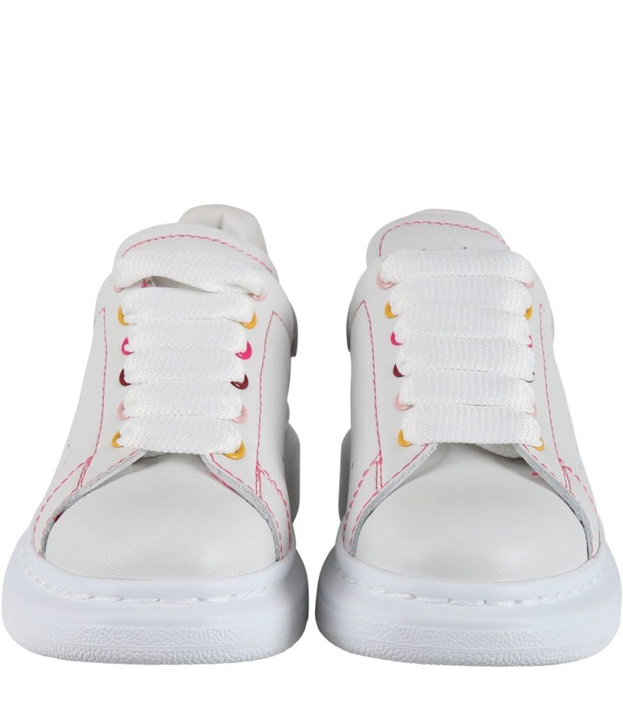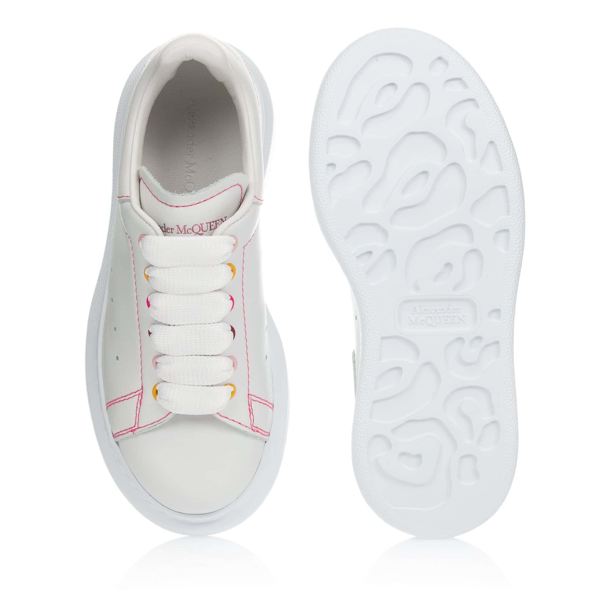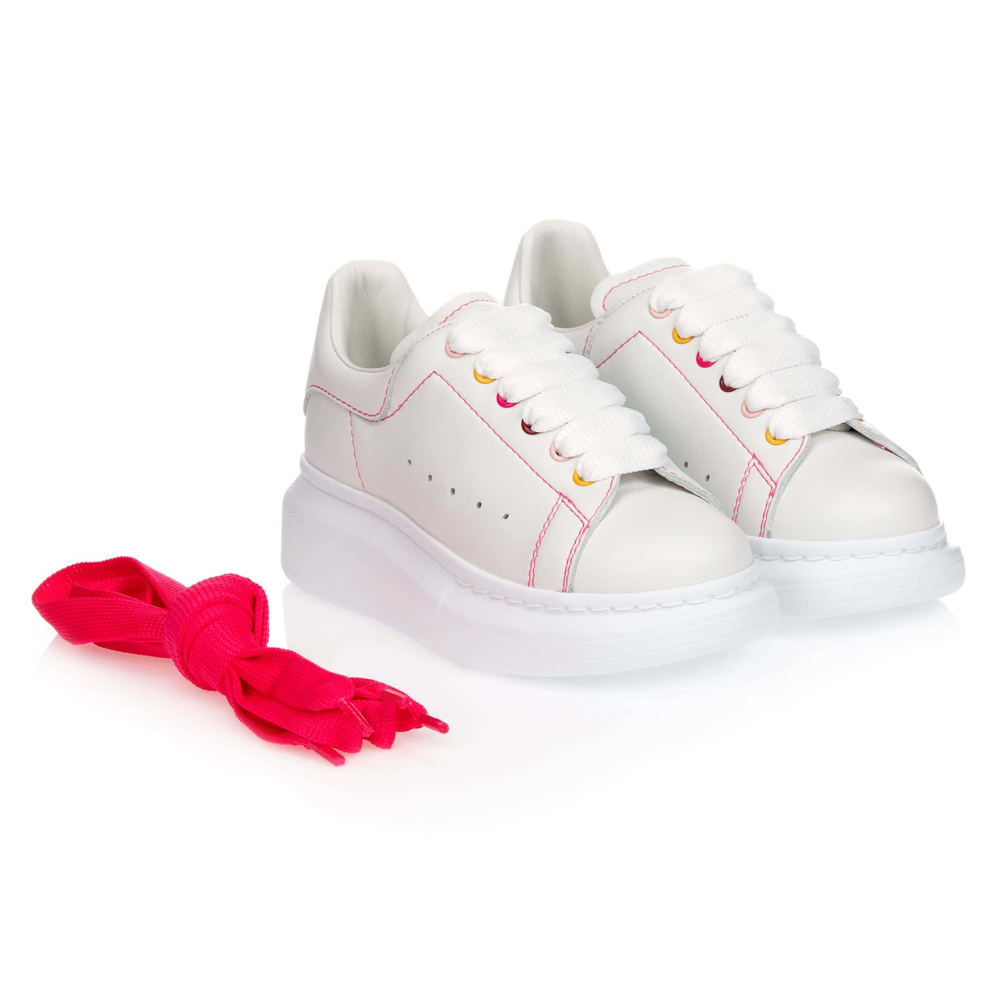 -Oversized sneaker met fuchsia roze stiksels en gekleurde oogjes