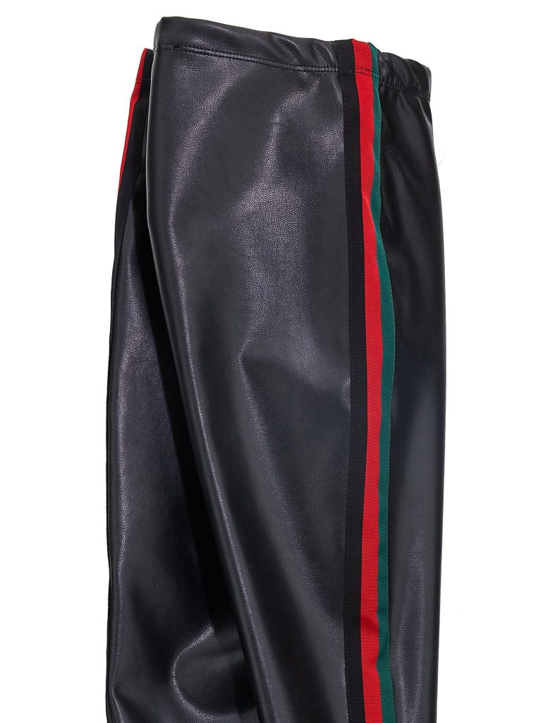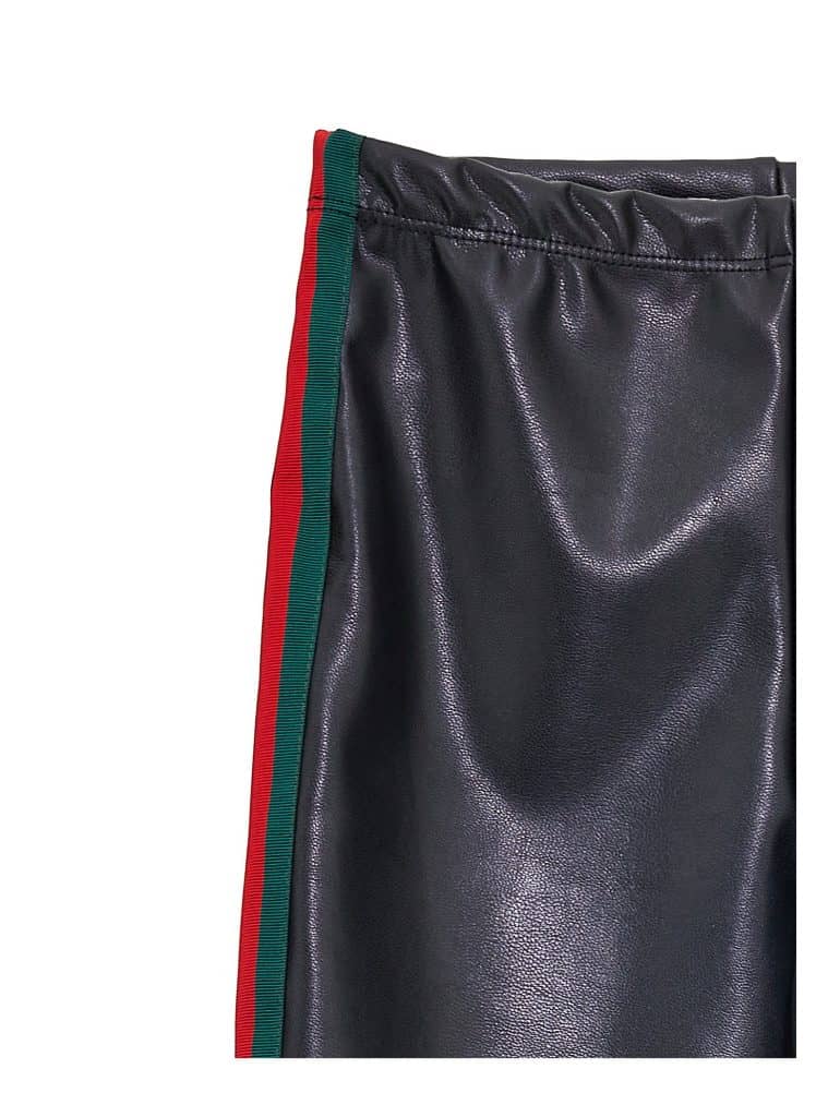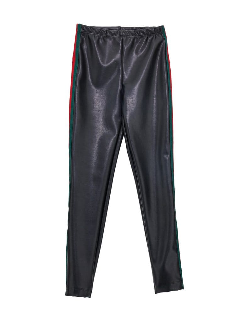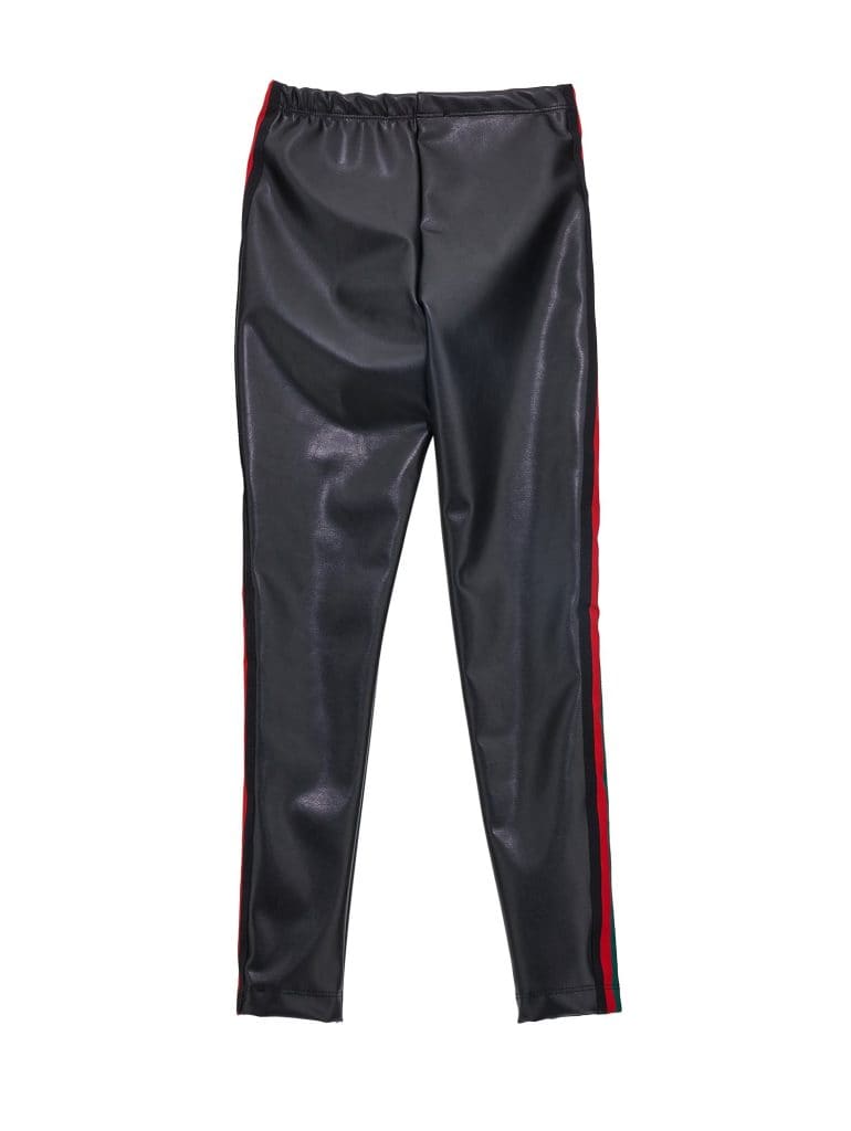 -Stretch faux leather legging met groenrode bies zijkant