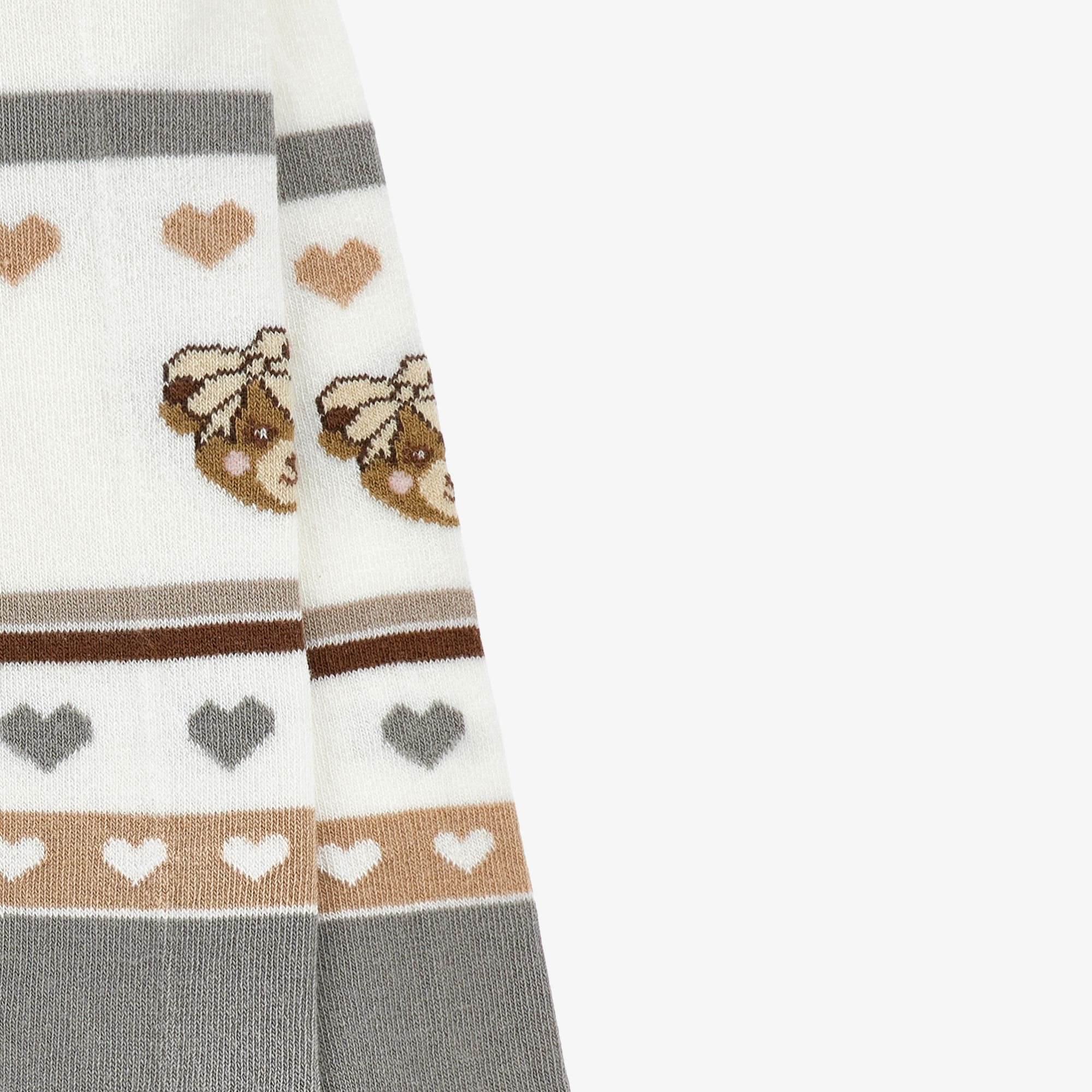 -Ingebreid patroon met teddyberen hartjes.