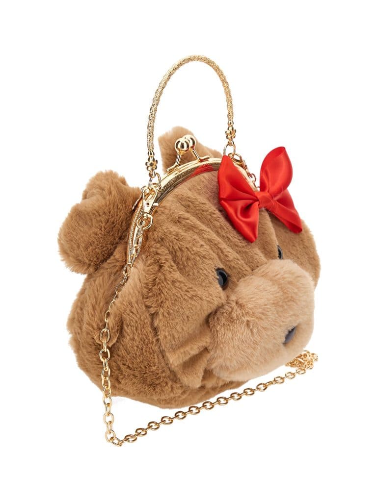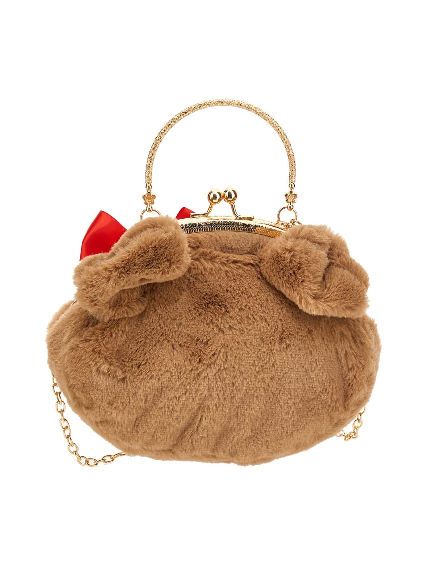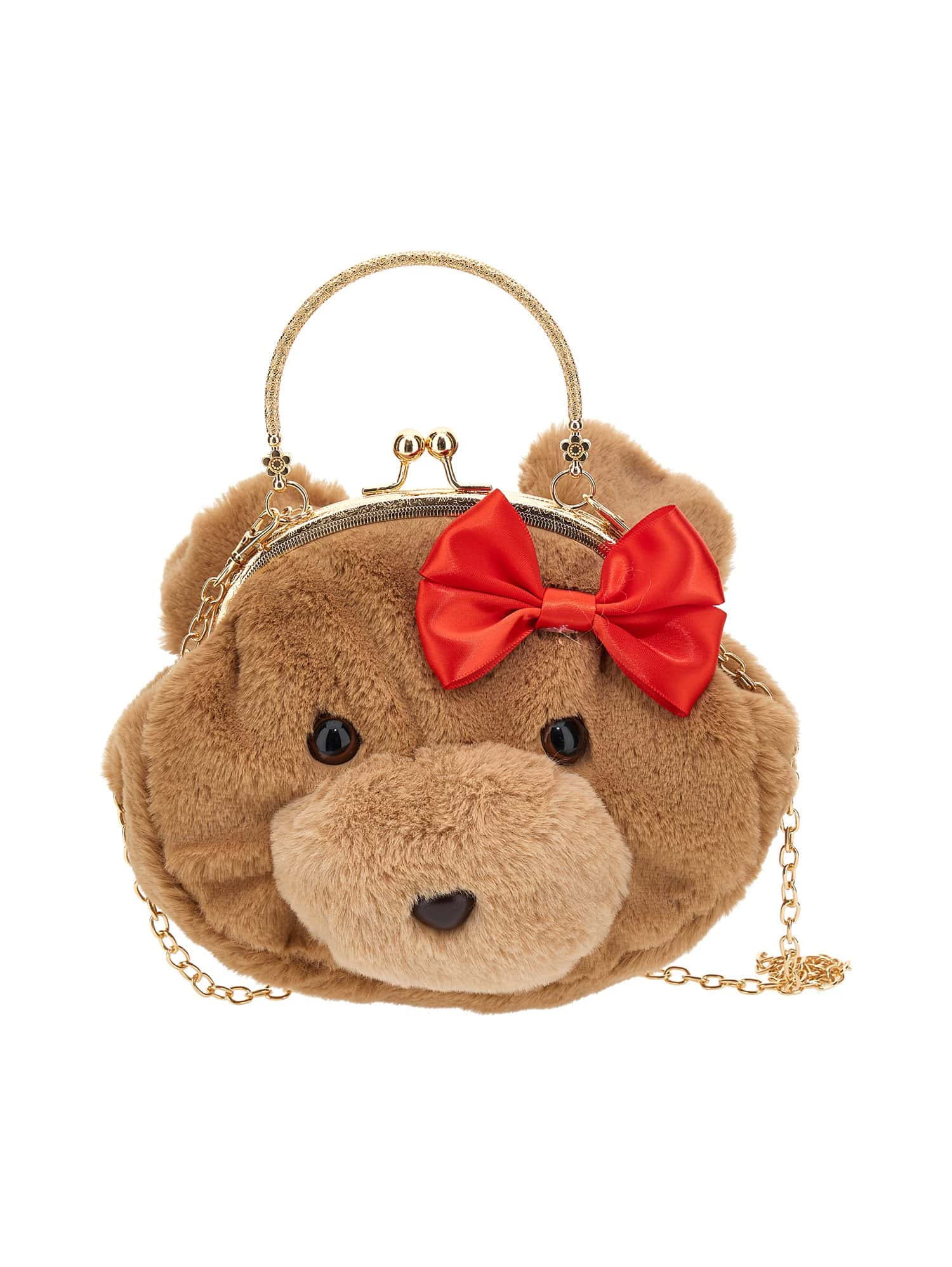 -Pluche teddy hoofd met rode strik en gouden ketting en handvat