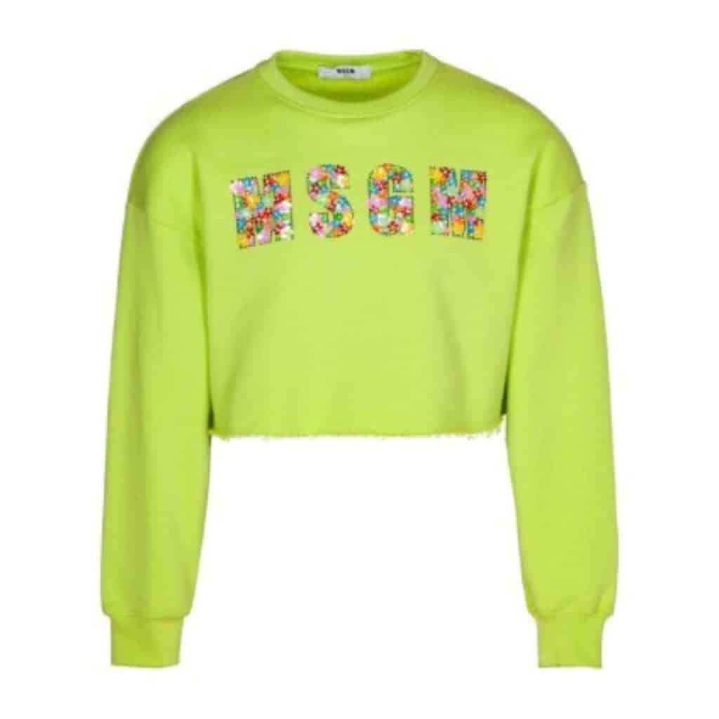 -Logo in paillet bloemmetjes geappliceerd