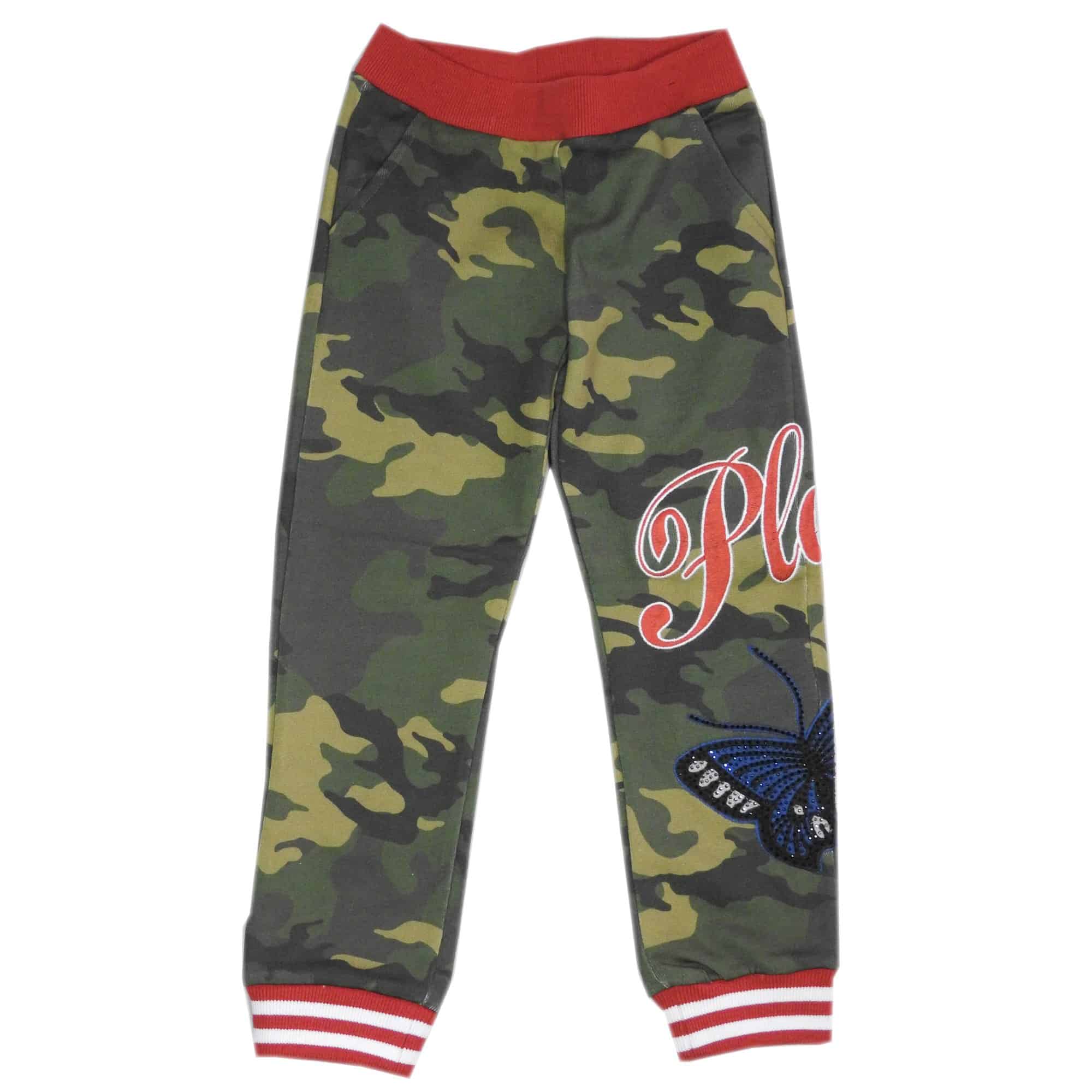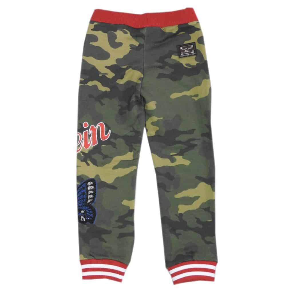 -Camouflage joggingbroek afgezet met rode tailleboord en rood witte pijp boorden