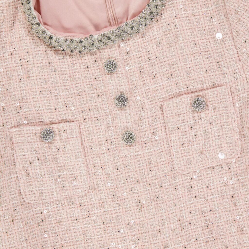 -Tweed stof met pailletjes em kraaltjes