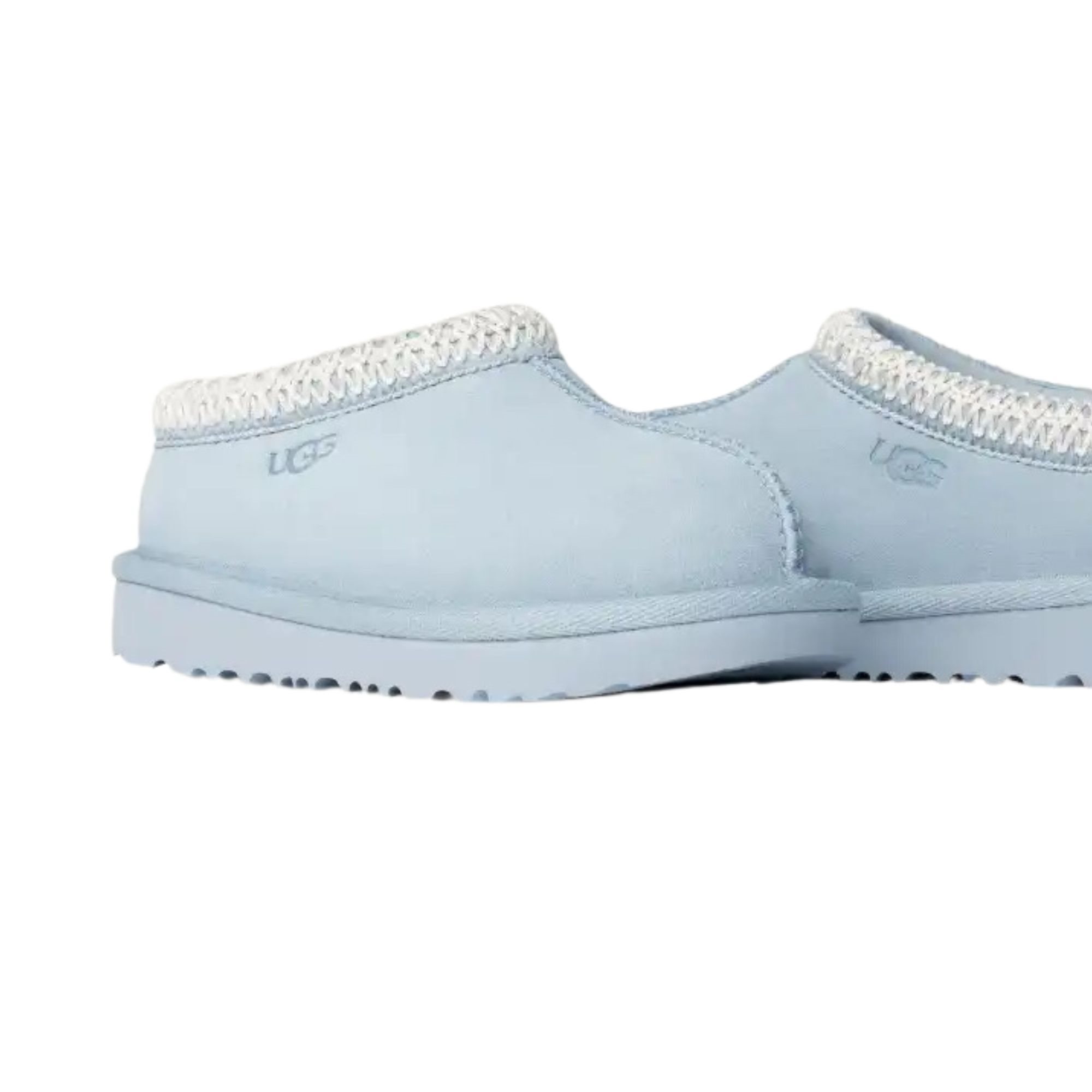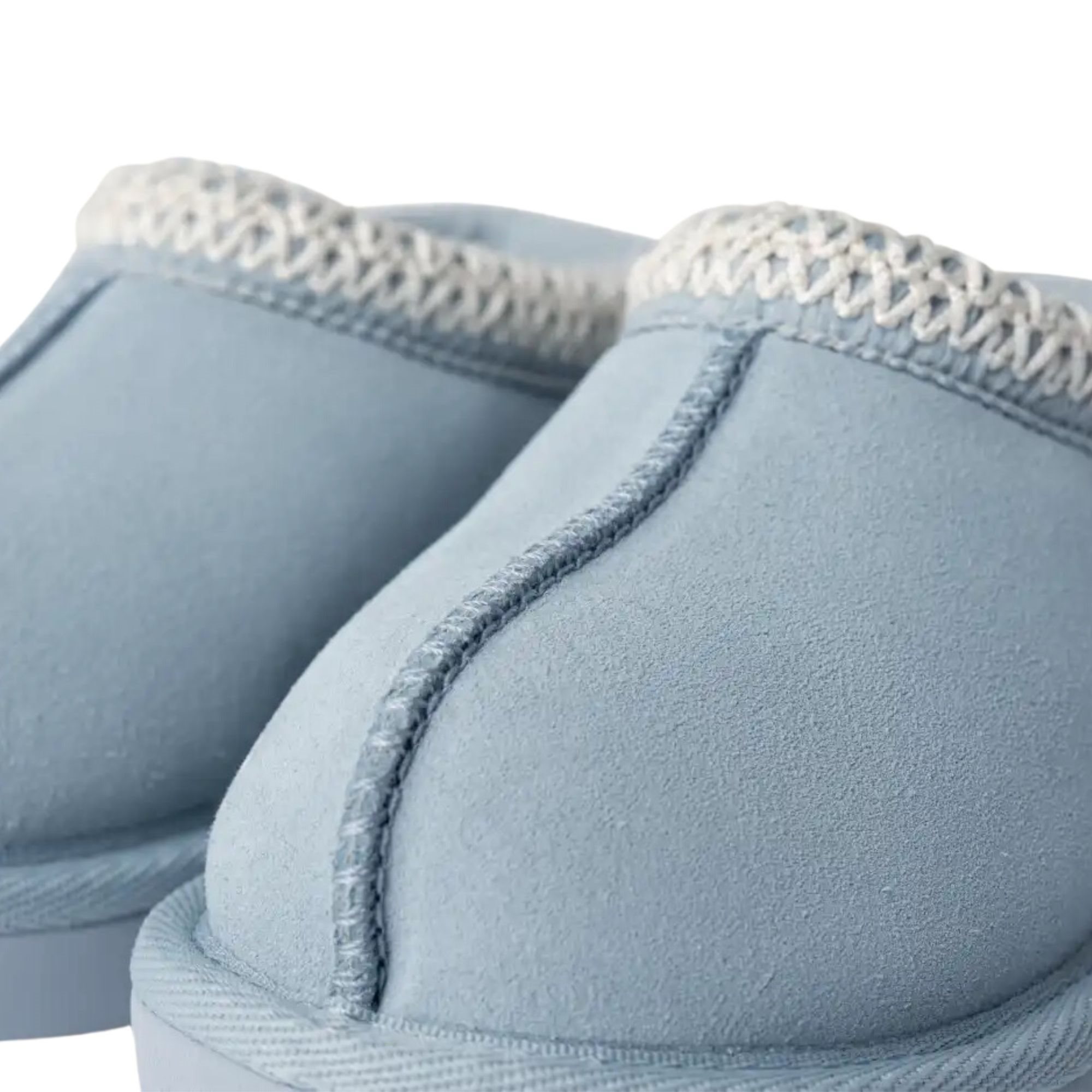 -Suede bont muilen met geborduurde bies