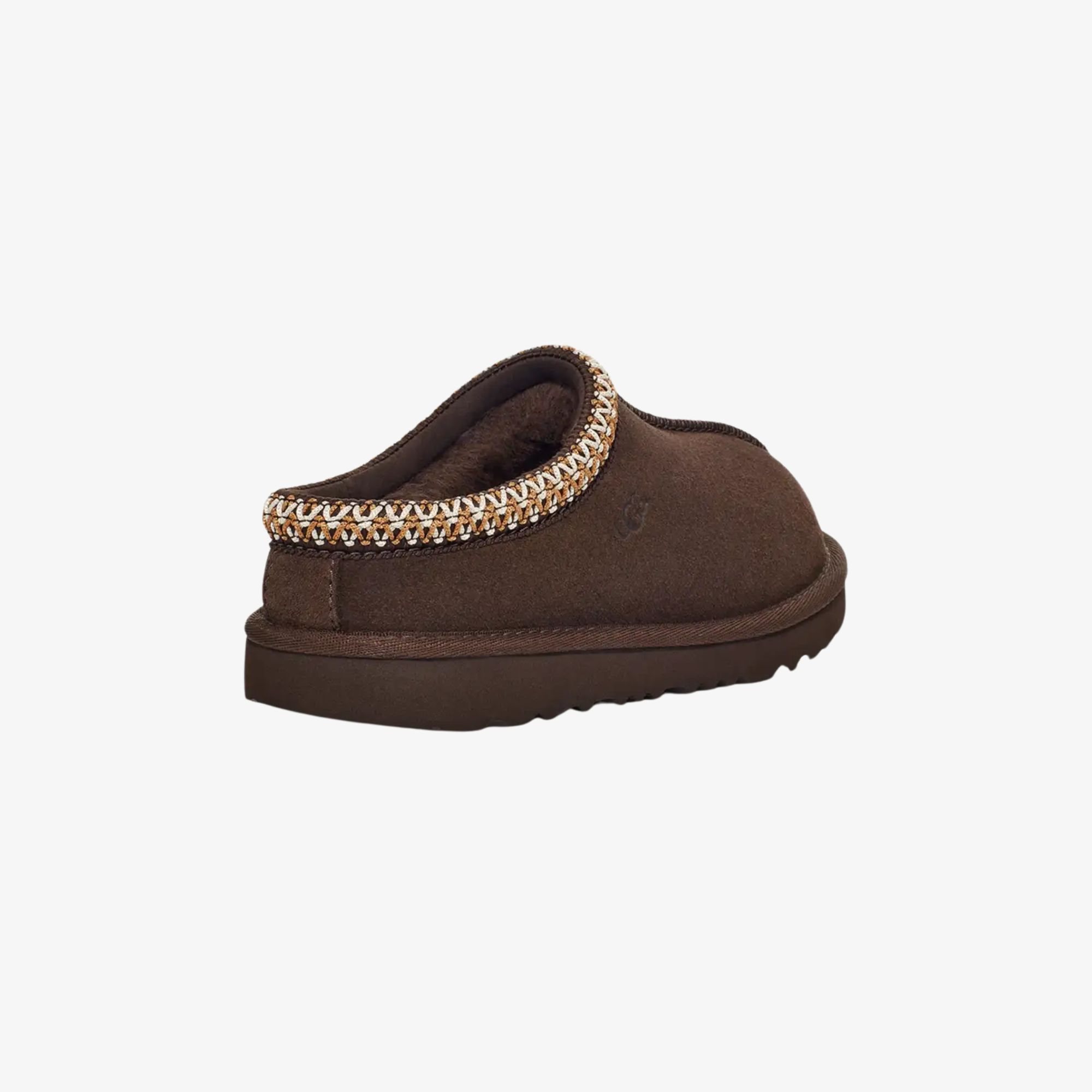 -Suede bont muilen met geborduurde bies