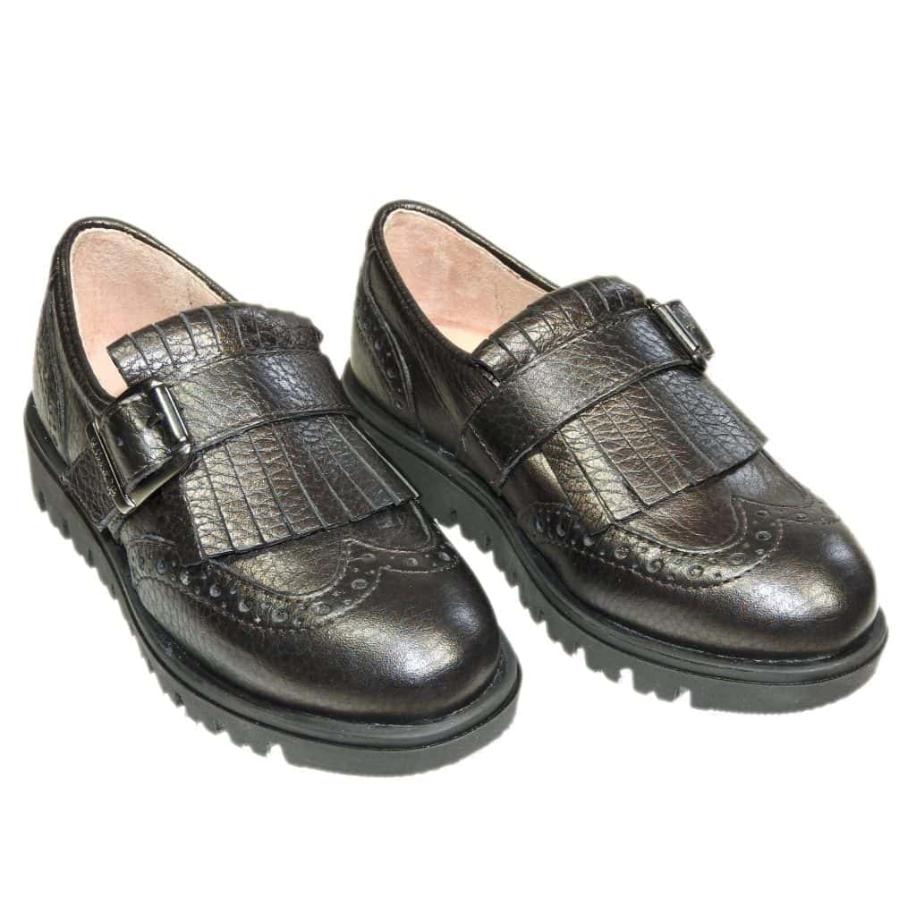 -Leer met riempje opzij rafels wreef