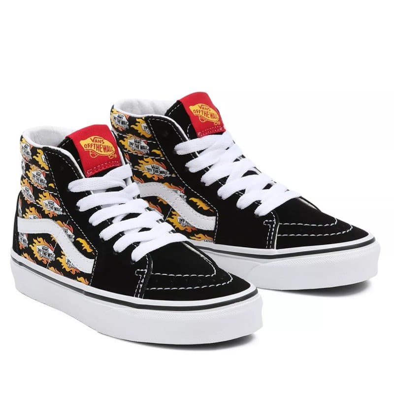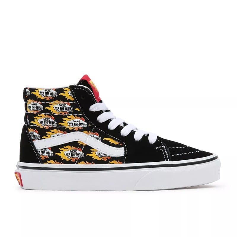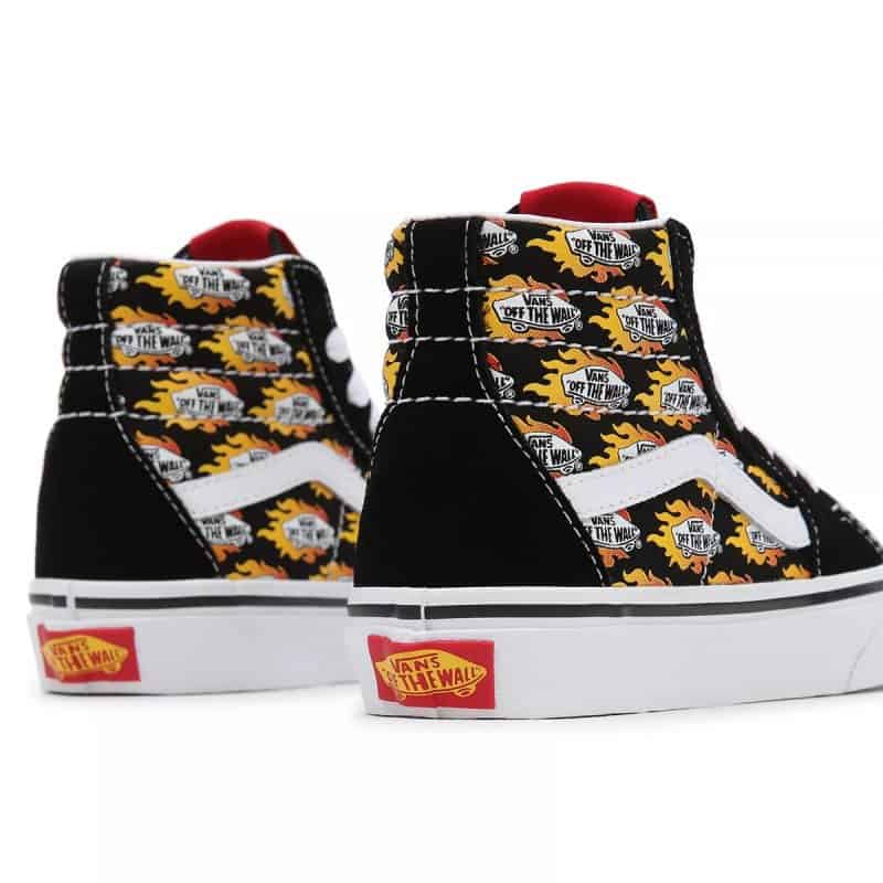 -Vans streep zijkant en skateboards met vlammen logo all over