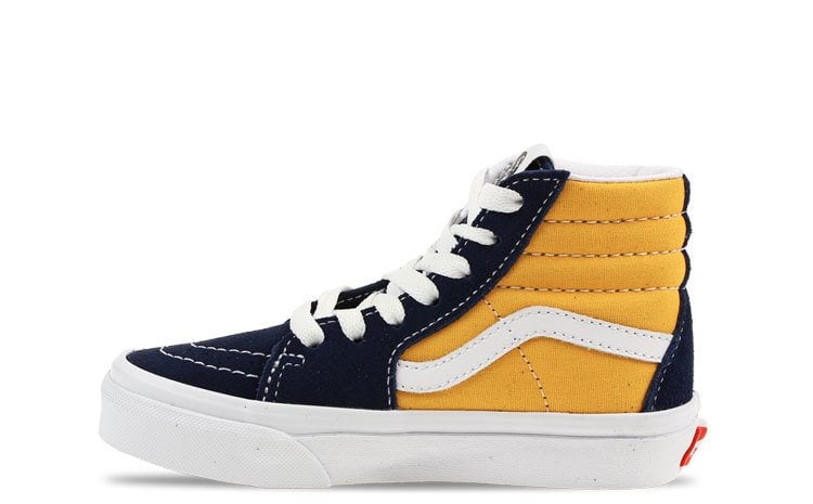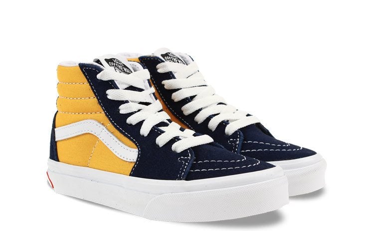 -Blauw suede en geel canvas