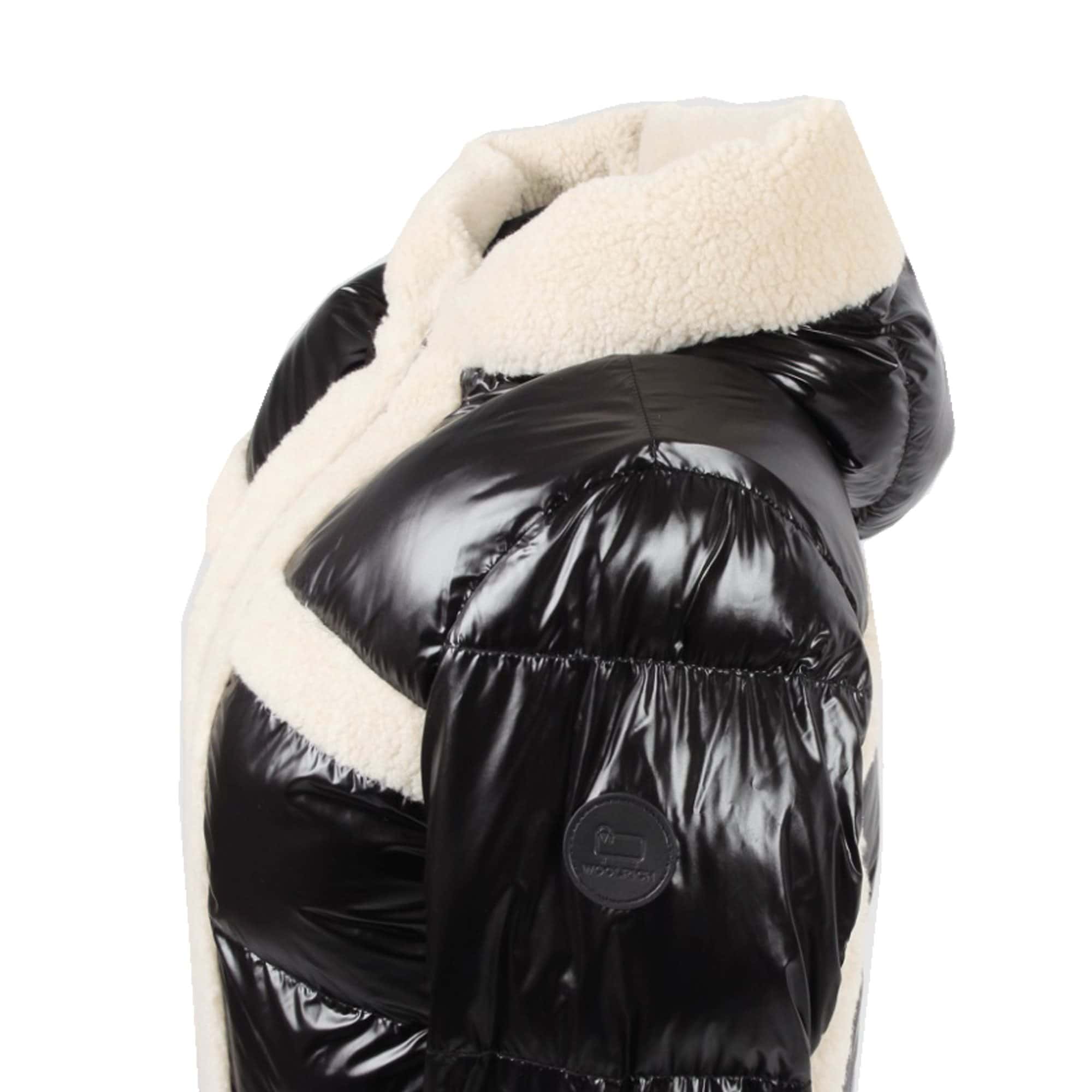 – Doorgestikt dons met teddy randen in beige